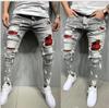 Jeansi rupți slim fit stil celebritate pentru bărbați - Vară High Street, Modă Europeană și Americană