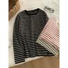 Early Autumn Striped Base Shirt for Women with Fashionable Round Neck Loose Versatile Long-sleeved T-shirt Casual Cotton Top Thin