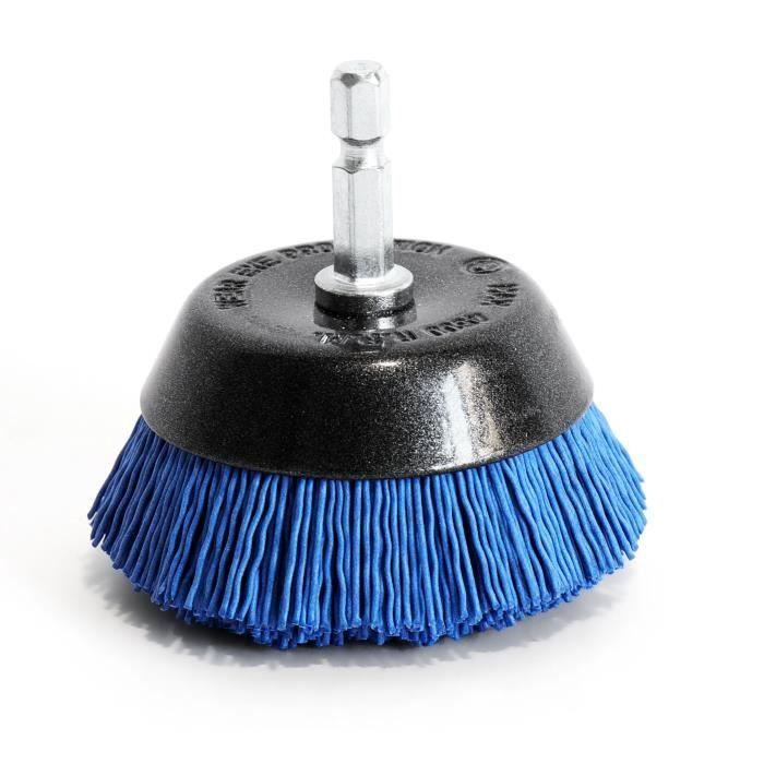 Brosse soucoupe en nylon fin pour bois et métal - s&r - 65 mm - queue 6 pans 1/4" (6,35 mm)