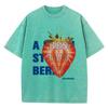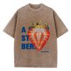 Casual Womans Acid Wash T-Shirts A Fresh Strawberey Printing Tops Distressed Oversize Cotton Tee Shirts Trend Female Clothes