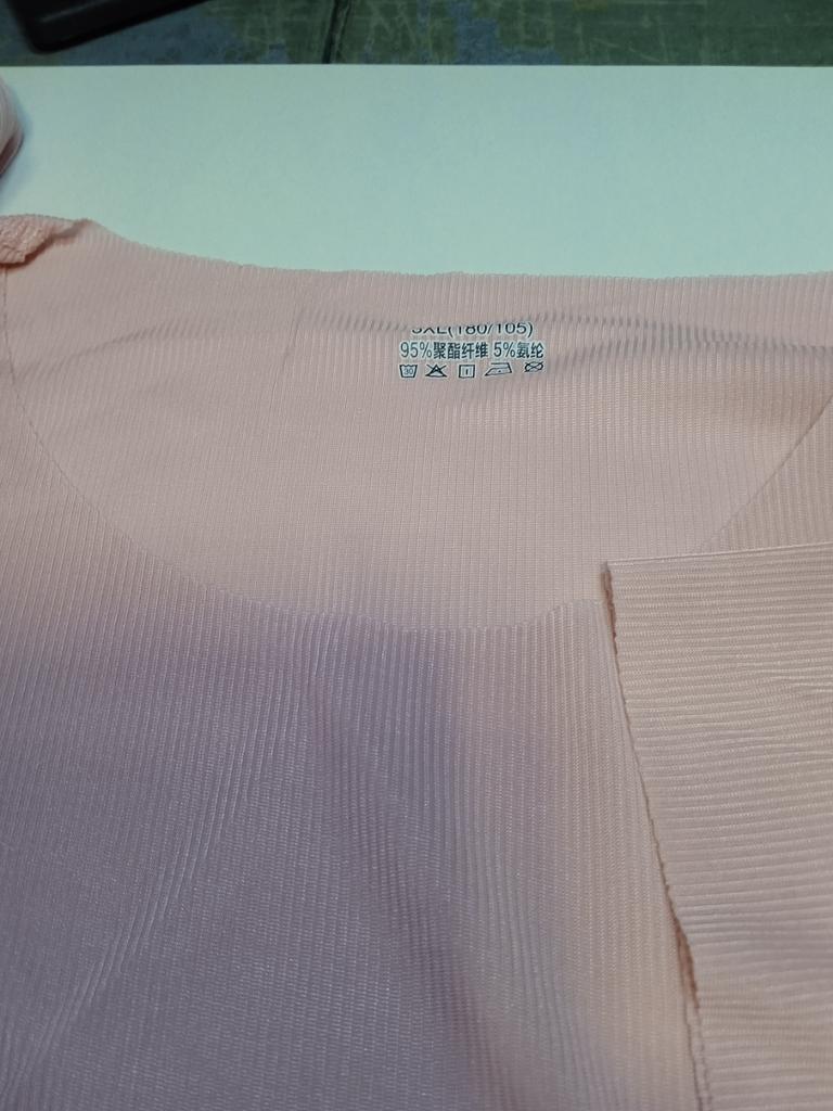 Calitatea materialului m-a surprins foarte mult! Chiar e plăcut! Singurul minus - nu sunt finisate: gâtul, mânecile, partea de jos a produsului.
