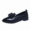 British patent leather pointed head shallow mouth bow single shoes women's large size flat bottom low heel women's shoes