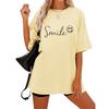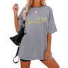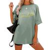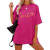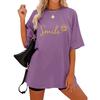 Tricou de damă cu mânecă scurtă, cu imprimeu lejer și mânecă scurtă, cu guler rotund și umăr căzut