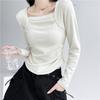 Develvet Thickened Square Collar Inner Bottoming Shirt for Women In Early Autumn New Style Small High-end Long-sleeved Top
