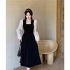 Rochie de damă cu guler pătrat, în stil francez, cu mânecă lungă și croială decupată - model slăbit și care reduce vârsta, lungime medie, noutate pentru primăvara 2024.
