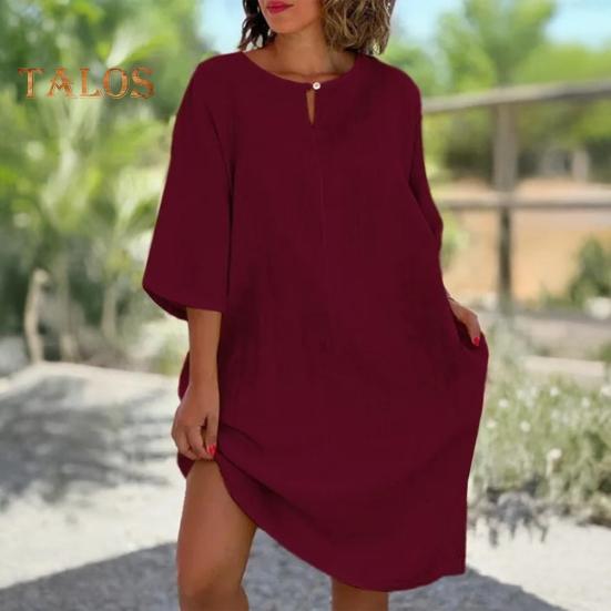Această rochie de culoare uni emană eleganță și simplitate la modă, ideală pentru diverse ocazii, cum ar fi ținute de birou, ieșiri zilnice, activități de agrement, zile de vară, excursii la plajă, cumpărături, vacanțe și petreceri.. Asortează-l cu accesoriile tale preferate, cum ar fi coliere, brățări, cercei, genți elegante, sandale sau pantofi cu toc înalt, pentru a-ți îmbunătăți aspectul fără efort.