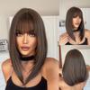 Perucă sintetică Bob neagră, dreaptă, cu breton, lungă medie, peruci stratificate pentru femei, păr natural, perucă zilnică rezistentă la căldură