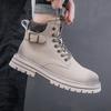 Ghete Martin albe pentru bărbați, pantofi la modă din piele de vacă, cizme de deșert pentru exterior, lovitură nu putredă, ajutor mediu, pantofi pentru bărbați Wenzhou