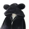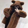 Palton de pluș de lungime medie pentru femei, iarna 2023, cu glugă și urechi de urs