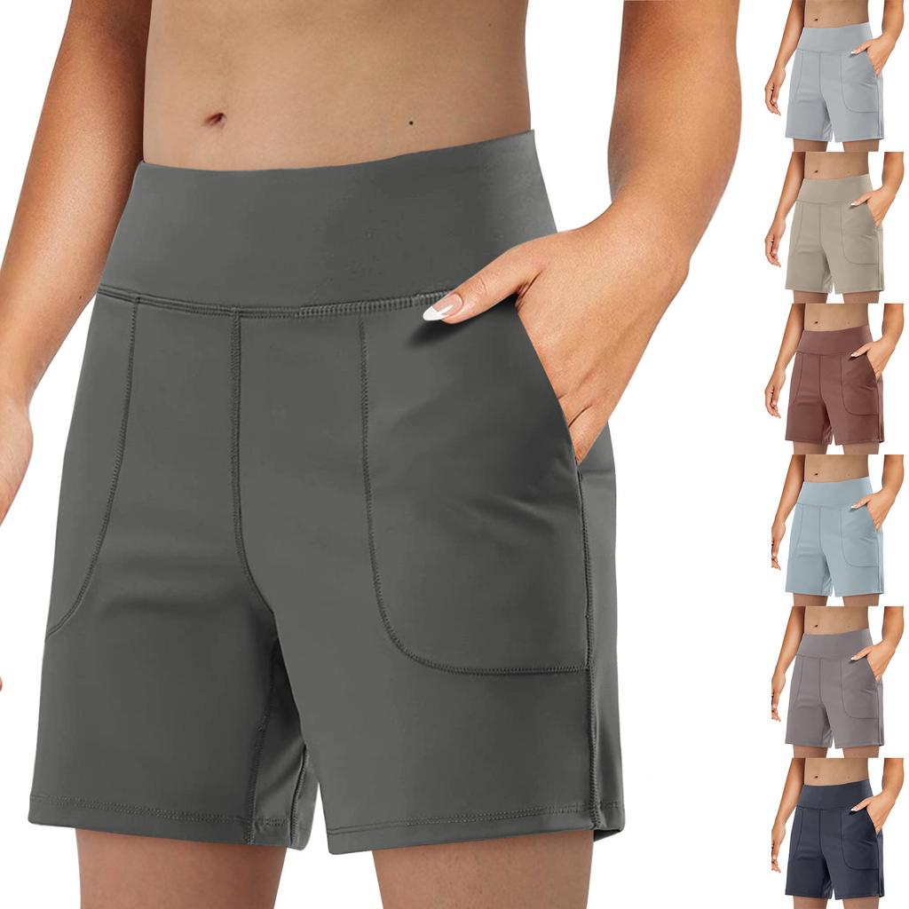Pantaloni scurti de alergare pentru damă, pentru antrenament, stratul sport, pantaloni scurți activi cu buzunare