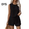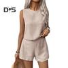 Îmbunătățește-ți garderoba cu acest set elegant din două piese pentru femei. Acest ansamblu lejer nu numai că accentuează silueta, dar asigură și confort maxim, adresându-se diferitelor tipuri de corp și grupe de vârstă.. Setul include o maiou fără mâneci și decolteu rotund, cu un design modern de dantelă goală pe spate, adăugând o notă de sofisticare ținutei..