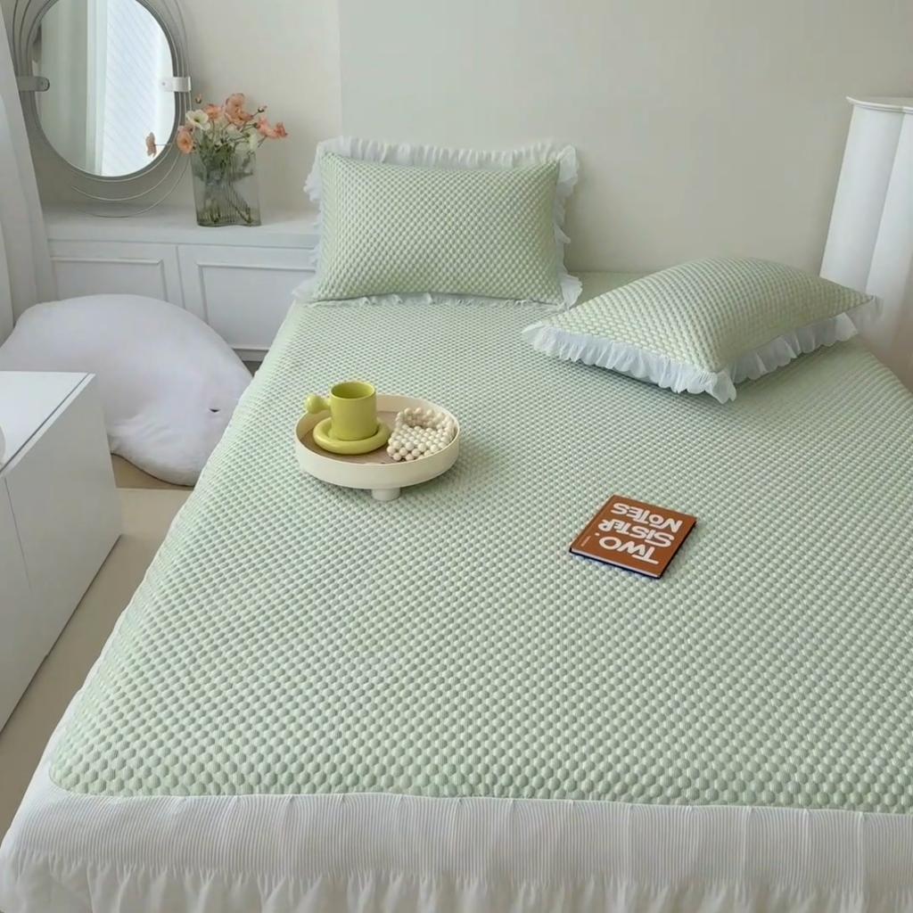Antibacterial Breathable Fitted Sheet Cool Feeling Silk Mint Water Molecule Cooling Mat Summer Cool Bed Cover (With Pillowcase)