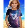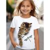 Tricouri amuzante pentru fete, vară, mânecă scurtă, desene animate cu animale, pisică, imprimare 3D, îmbrăcăminte pentru fete, tricouri casual