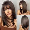 Peruci sintetice drepte maro închis de lungime medie cu breton pentru femei Perucă netedă cu aspect natural din fibră rezistentă la căldură