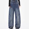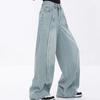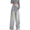 GMXIA Blugi cu picioare largi pentru femei, talie înaltă, drapaj, o sută de buzunare, pantaloni drepți, trend de stradă