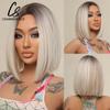 Peruci sintetice Bob drepte scurte cu breton pentru femei Perucă maro până la blondă petrecere Cosplay zilnic păr din fibră rezistentă la căldură