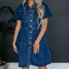 IHUASU Rochie Casual din Denim cu Rever și Mânecă Scurtă de Vară