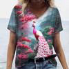 T-Shirt for Women Peacock Printed Tops Women's Clothes Tees Summer V-Neck T-Shirts