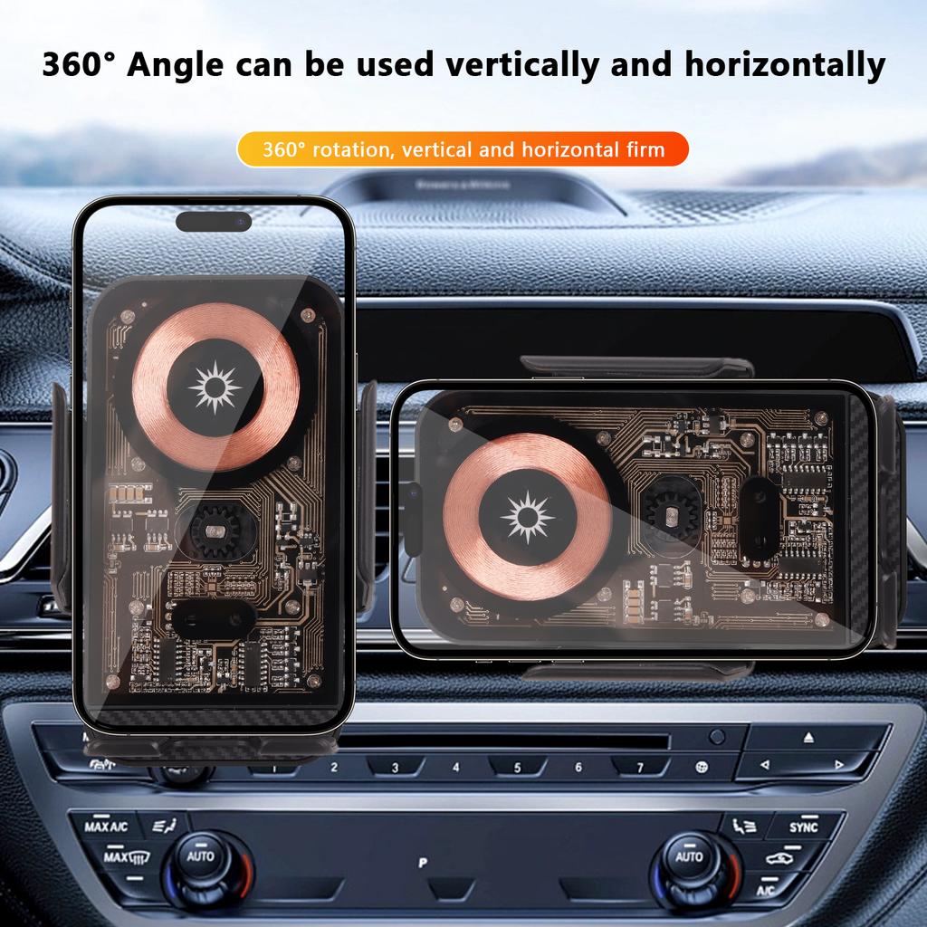 【Make Drive Easier】Combines the wireless charger & car phone mount, offers fast charging andsaves you from messing with cables while driving. A 360°rotating sphere can help you get the mostcomfortable and safest GPS Navigation and viewing angle without neck or eye strains while chargingyour phone.