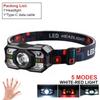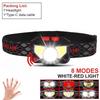 Lanterna frontală LED luminoasă, reîncărcabilă, cu lumină roșie, impermeabilă, cu senzor de mișcare, lampă de cap pentru camping, lumină pentru alergat