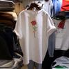 Retro Rose Short sleeved T-shirt Women's Loose Top Summer Top Half-sleeve
