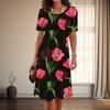 Women's Fashion Graceful Dandelion Print Summer Spring Short Sleeve O-Neck Casual Dresses