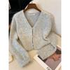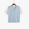 Women's Color-blocking Top Women's Embroidered Knitted Sweater Short-sleeved Cardigan