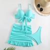 Nouă Culoare Solidă Sexy Cu Fusta Bikini Bandeau Costum de baie Femei Costum de baie Trei piese Set Bikini Costum de baie pentru baie
