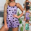 Set de pijamale pentru femei, cu imprimeu de inimă, maiou și pantaloni scurți cu tiv cu volane, set de camisol, două piese, set de lenjerie de vară, casual, pijamale
