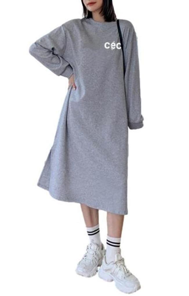 Rochie Albastru Link Lungă Logo Călduroasă Căptușeală Pieptănată Peste Maxi Maternitate Haine de Casă Largi [albastru link] Femei (M, Gray)