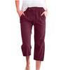 Pantaloni pentru femei, ocazional de vară, de culoare uni, elastic, cu talie înaltă, din bumbac și in, pantaloni largi, cu buzunar cu șnur Pantaloni la mijlocul piciorului