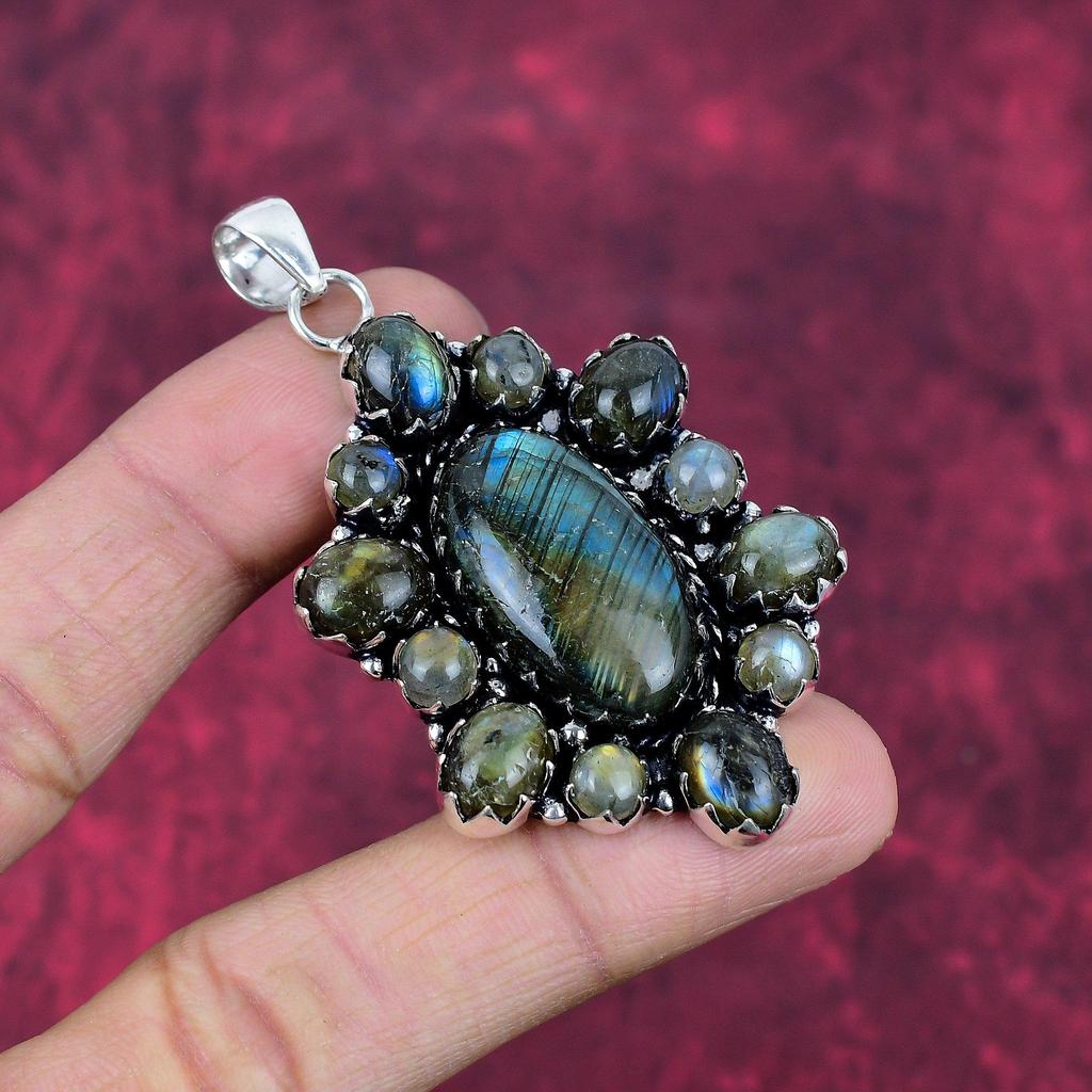 Pandantiv labradorit, bijuterii antice cu pandantiv din argint 925 din piatră prețioasă lucrată manual, pentru cadou Bijuterii din argint