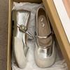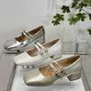 High heels thick heel silver single shoes women's 2025 new summer skirt French medium heel Mary Jane small leather shoes