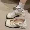 Pantofi de seară francezi cu un singur șiret pentru femei, cu toc mic, toc gros, stil temperament, pantofi Mary Jane 2024 noi, primăvară-vară, pantofi mocasini stil micuț parfumat