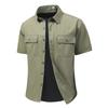 Men's Summer Ice Silk Shirt Elastic American Workwear Multi Pocket POLP Shirt Large Size Outdoor