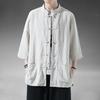 Costum Tang de vară în stil chinezesc din in cu mânecă scurtă pentru bărbați, Hanfu retro cu mânecă cinci sferturi, bumbac și in pentru laici, mărime mare, costum de ceai cu mânecă scurtă