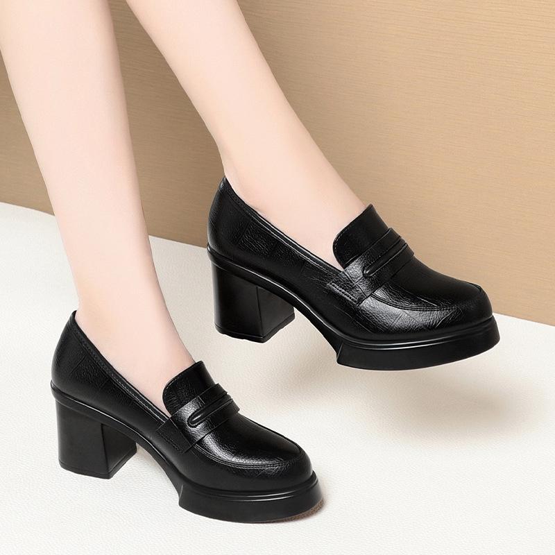 Pantofi Simpli Mary Jane cu Toc Înalt Retro pentru Femei, cu Gură Adâncă și Toc Gros, Mocasini Britanici cu Talpă Groasă, Pantofi Eleganti din Piele pentru Mamă