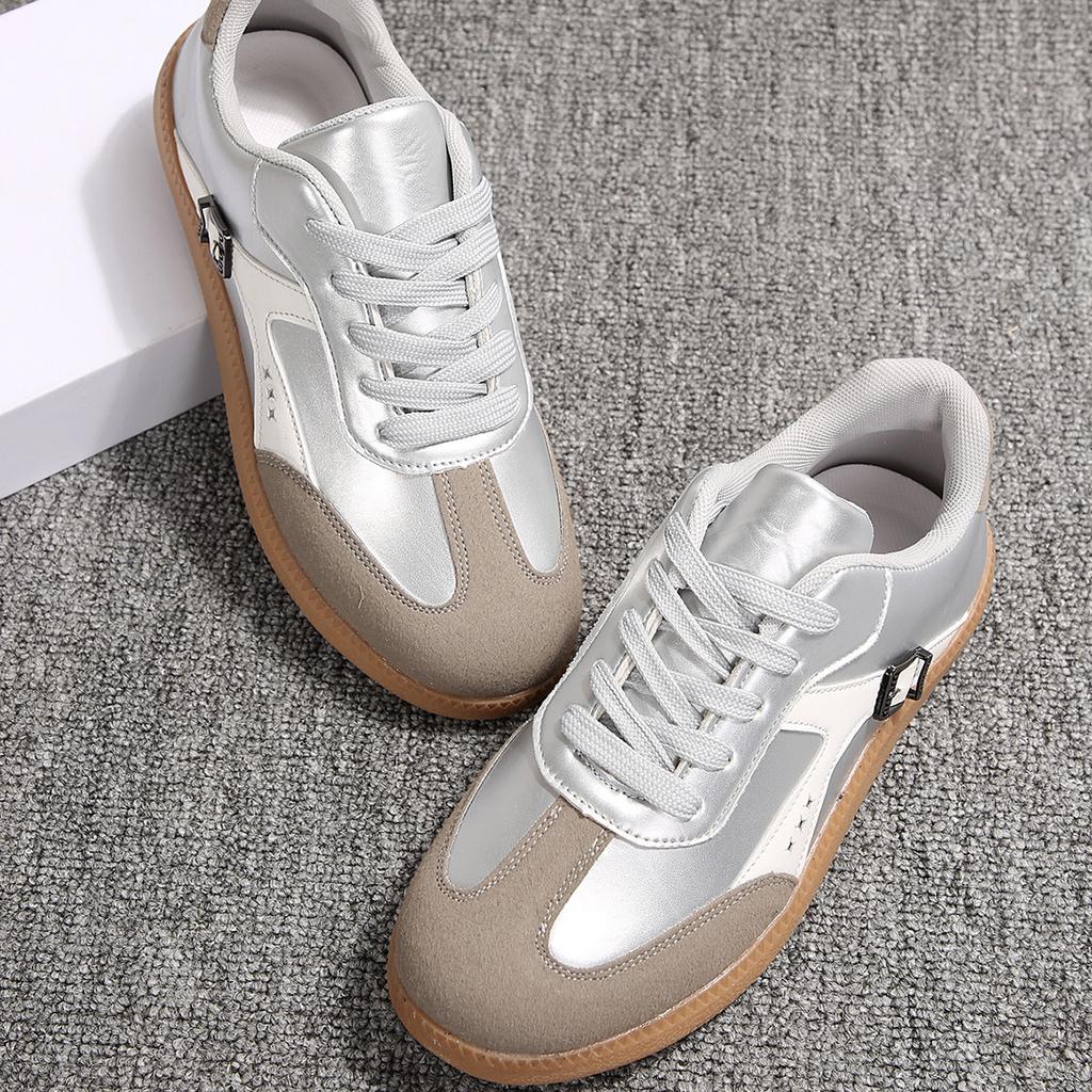2024 Culori asortate cu vârf rotund, gură superficială, pantofi vulcanizați pentru femei, cu șireturi, toc plat, cu gură mică, pantofi confortabili pentru femei