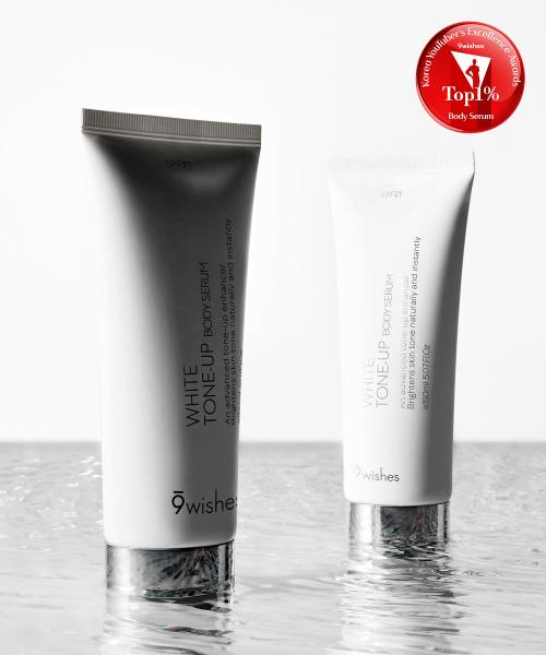 9WISHES White Tone-Up Body Serum SPF21 Duo is a large-capacity body serum that provides a natural tone-up effect for the body skin. It can be used throughout the four seasons and is equipped with SPF21 to protect the skin from everyday UV rays. With a moisturizing texture, it brightens skin tone upon application, absorbs quickly without stickiness, and offers a refreshing finish. The 150ml large capacity makes it an excellent value, ideal for broad application across the body.