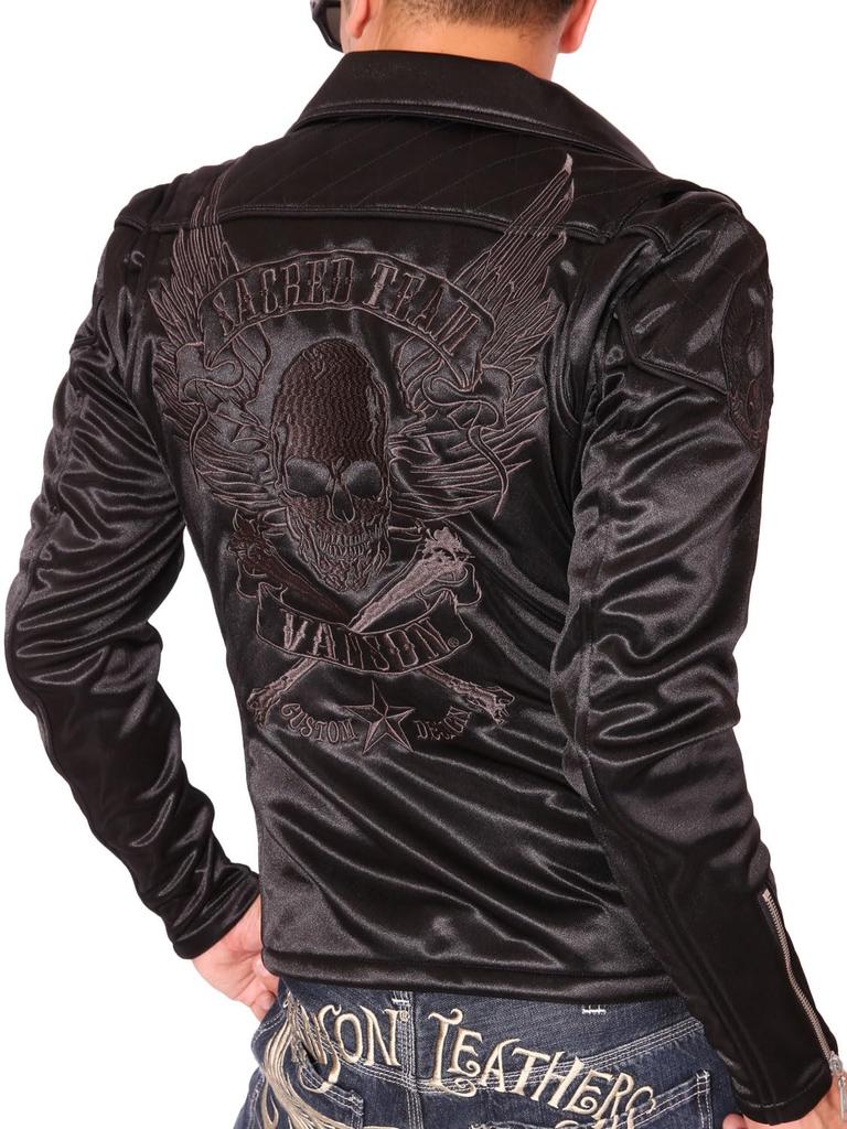 Magazinul nostru jachetă dublă de motociclist legată făcută la comandă, broderie Cărbune S [Banson] ACV-701