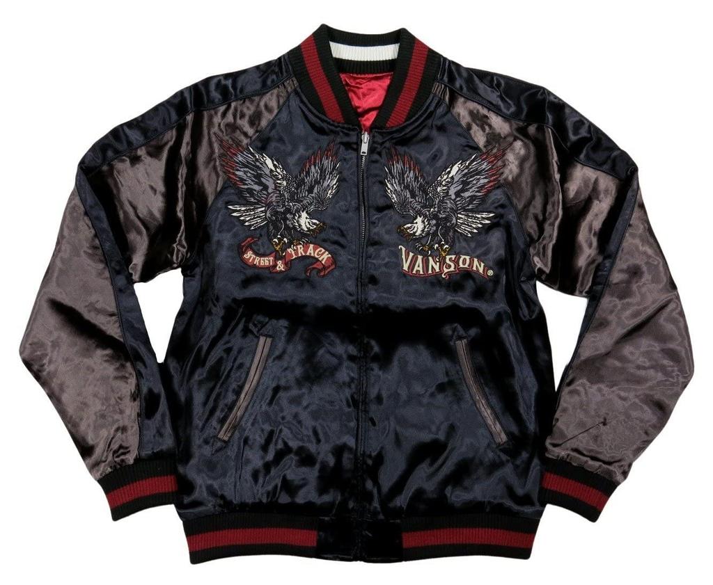 American Eagle x Emblema Stelei Triple Jachetă Suvenir Sukajan Reversibilă din Satin de Raion M NEGRU [Vanson] NVJK-2202 Bărbați (Negru)