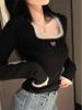 Women's High-End Soft Square Collar Clavicle Top - Slim, Fashionable, Autumn/Winter Style