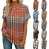 T-shirt women's summer leisure elegant simple v-neck short sleeve red plaid top loose casual wear ladies T-shirt