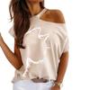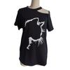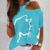 Designul cu un singur umăr, capul, mânecă scurtă și imprimeu cu pisici face acest tricou casual și la modă.