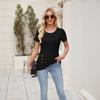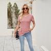 Top de damă nou, culoare uni, cu gât rotund, la modă, cu nasturi și volane la mânecile scurte