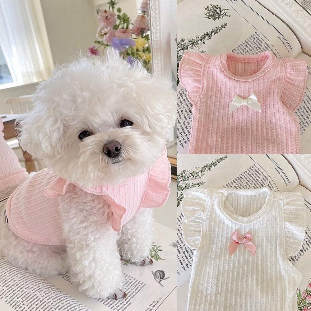 Dog Vest Flying Sleeves Puppy T-Shirt Thin Dog Shirt Pet Two Legged Dog Clothes Cotton Undershirt Sweet Cute Bow Chihuahua Skirt