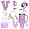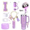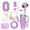 Set de 6 accesorii pentru pahar Stanley Cup de 40 oz cu mâner, inclusiv capac și capac cu pai din silicon, dop anti-scurgere