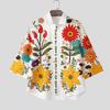 INCERUN Cămăși Casual de Vacanță pentru Bărbați, Mărimi Oversized, Guler Rever, Mâneci 3/4, Nasturi, Imprimeu Floral