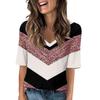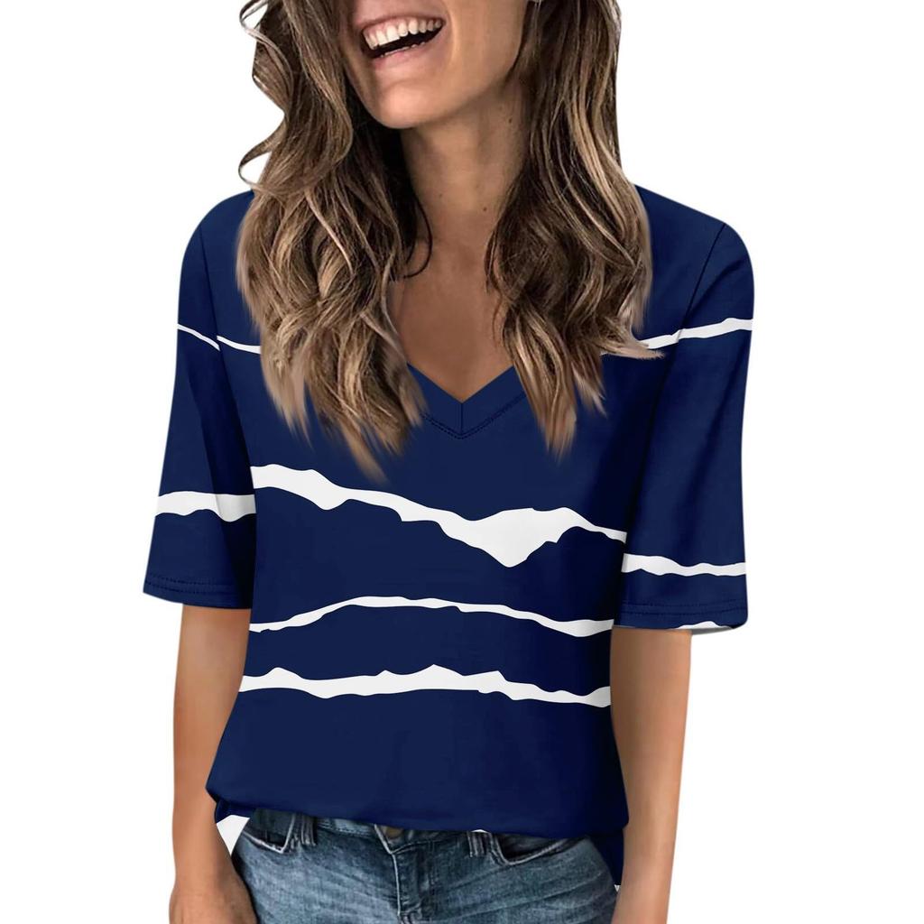 Top de vară cu gât în V, cu imprimeu gradient 3D, la modă, casual, cu mâneci scurte, tricouri de damă
