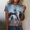 Retro Western Women's Short Sleeved T-shirt Top Loose Cowboy 3D Printed T-shirt